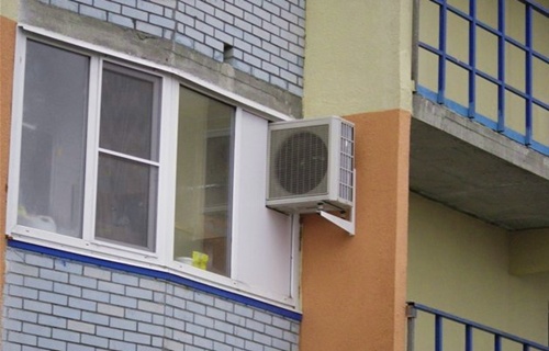 При установке системы сначала выполняют монтаж наружного блока, горожанам лучше выбрать для этого открытый балкон, чтобы в любое время иметь к нему доступ. Если балкон застекленный или его нет вообще, установку внешнего блока выполняют на поверхности наружной стены, высота его расположения не должна быть меньше двух метров от поверхности земли. Для этого сверлятся отверстия, а крепление выполняется с помощью анкерных болтов и прочных кронштейнов. Желательно спрятать наружный блок кондиционера под козырьком.